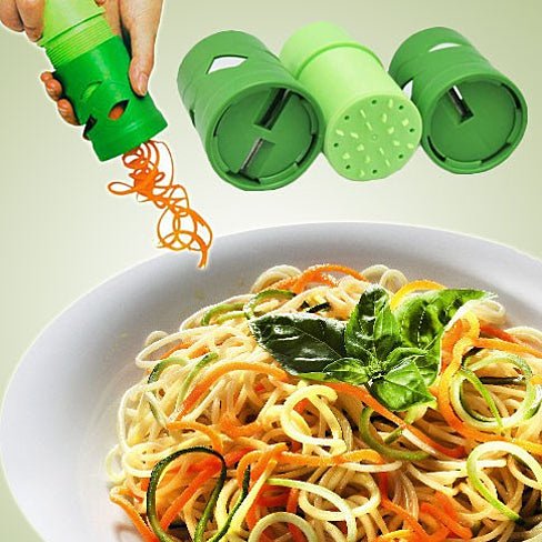 • Interchangeable heads for Spaghetti and Spiral shaped vegetables.