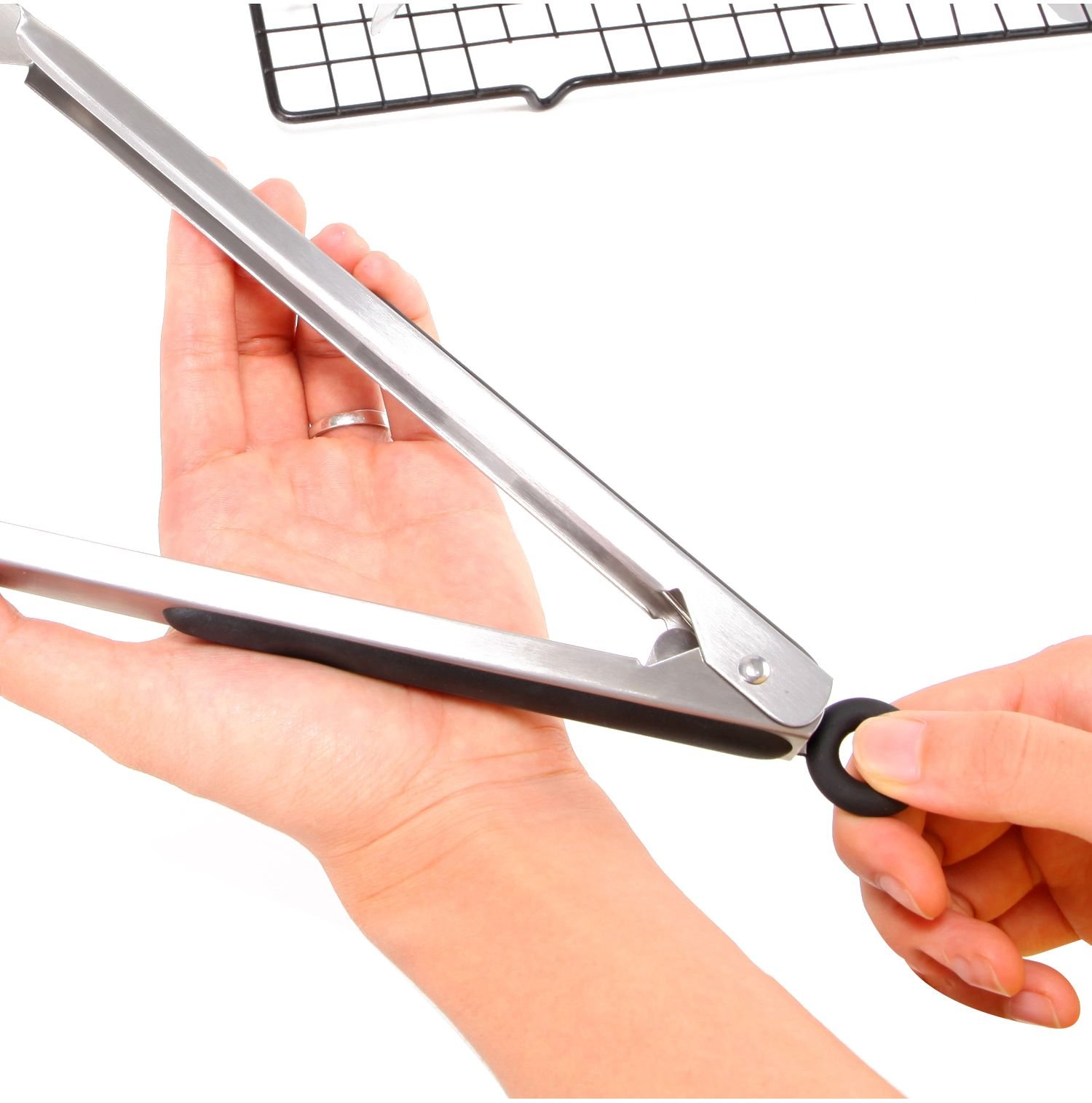 2.LOCKING MECHANISM & PULL-RING TECHNOLOGY : Our pull ring technology will keep the food tongs from opening and closing accidentally which will allow you to facilitate better control while using them, simply pull the ring to lock and push to unlock.