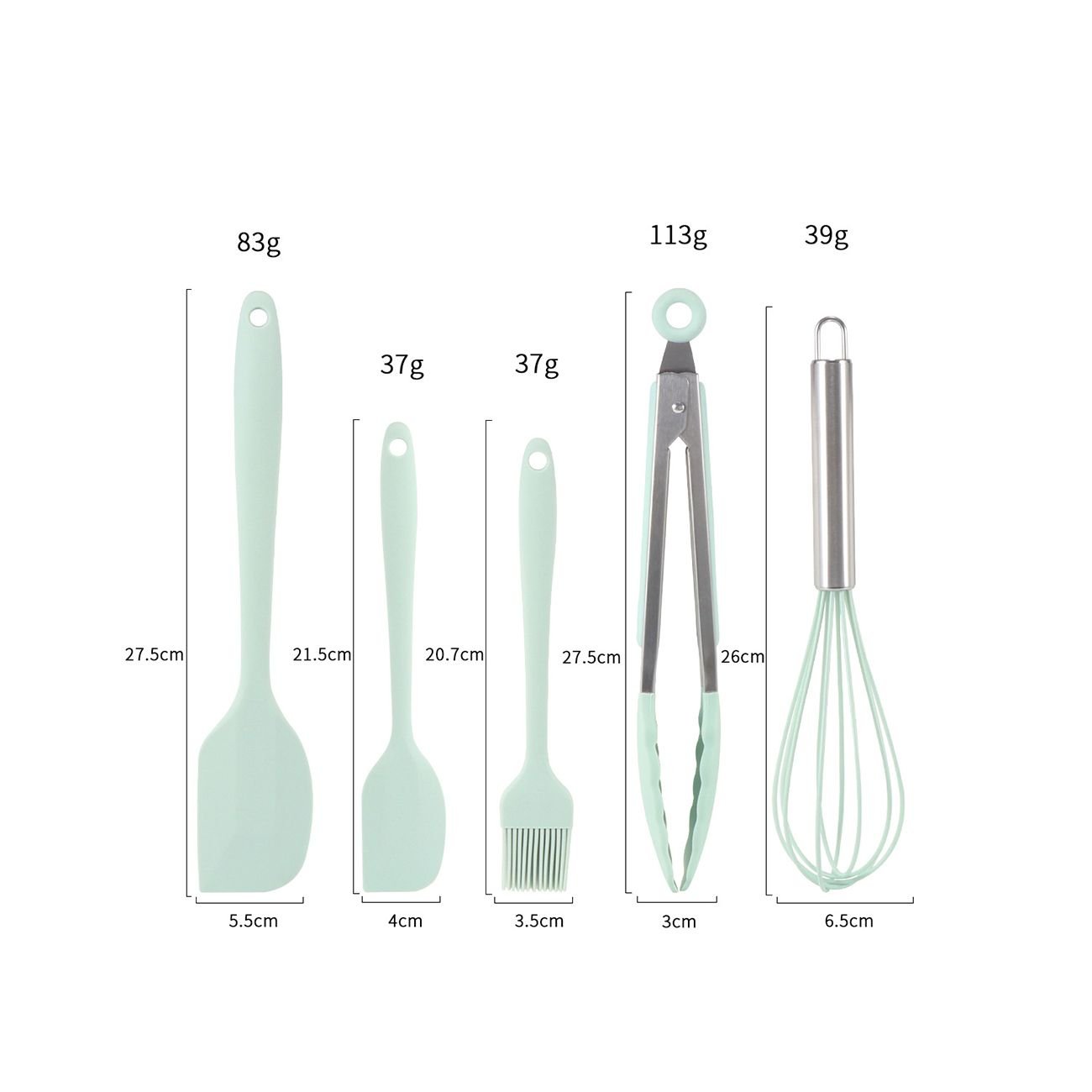 Home > Silicone Cook Utensils; 5 Piece Kitchen Cooking Set; Includes Large Spatula; Small Spatula; Grease Brush; Food Clamp; Whisk