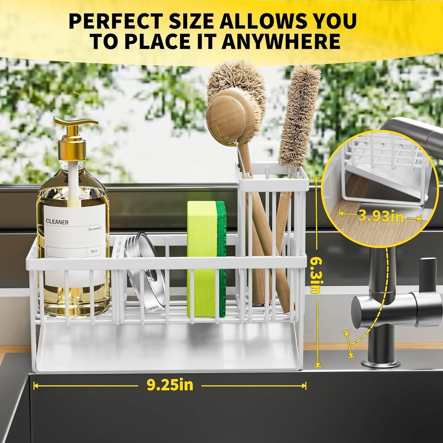 PREMIUM STURDY MATERIAL: kitchen sink organizer is made of premium stainless steel which can effectively prevent rust and deformation. And you can clean it easily by rinsing it under a running tap. Take the clutter out of your countertops.