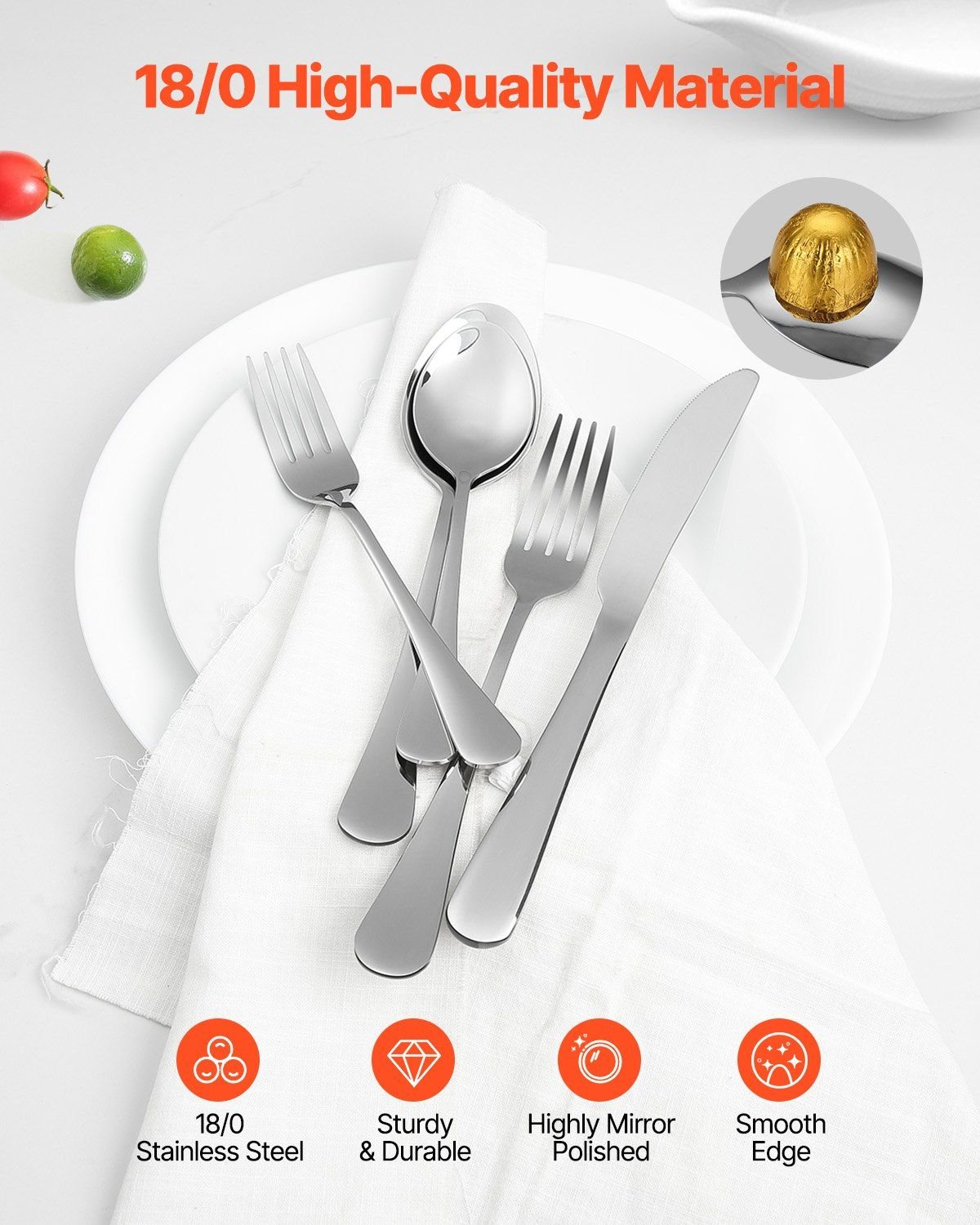Made from top-tier 18/0 stainless steel, this flatware set is durable, corrosion-resistant, rust-proof, and well-balanced. The smooth-edged design provides comfort during use. Dishwasher safe, with the perfect weight and thickness for easy handling, ensuring long-lasting durability.