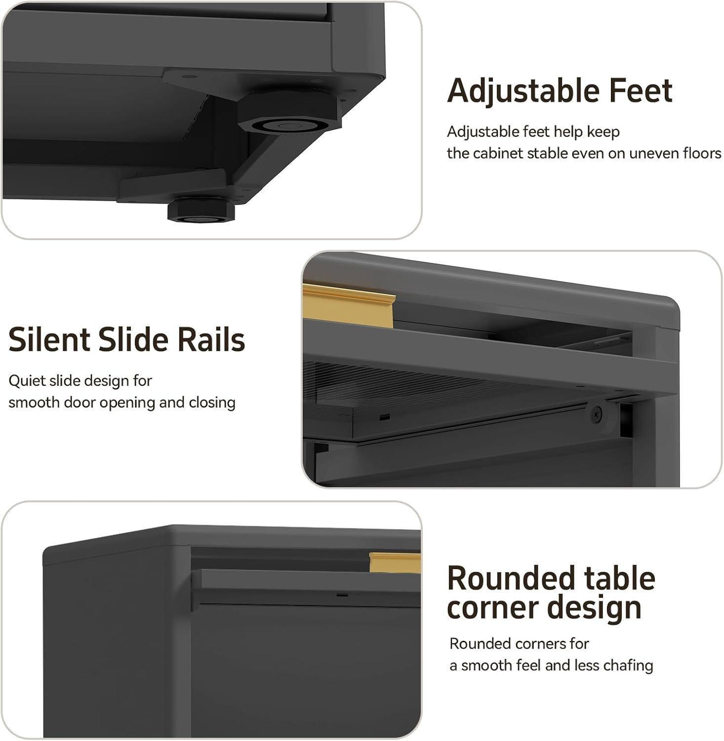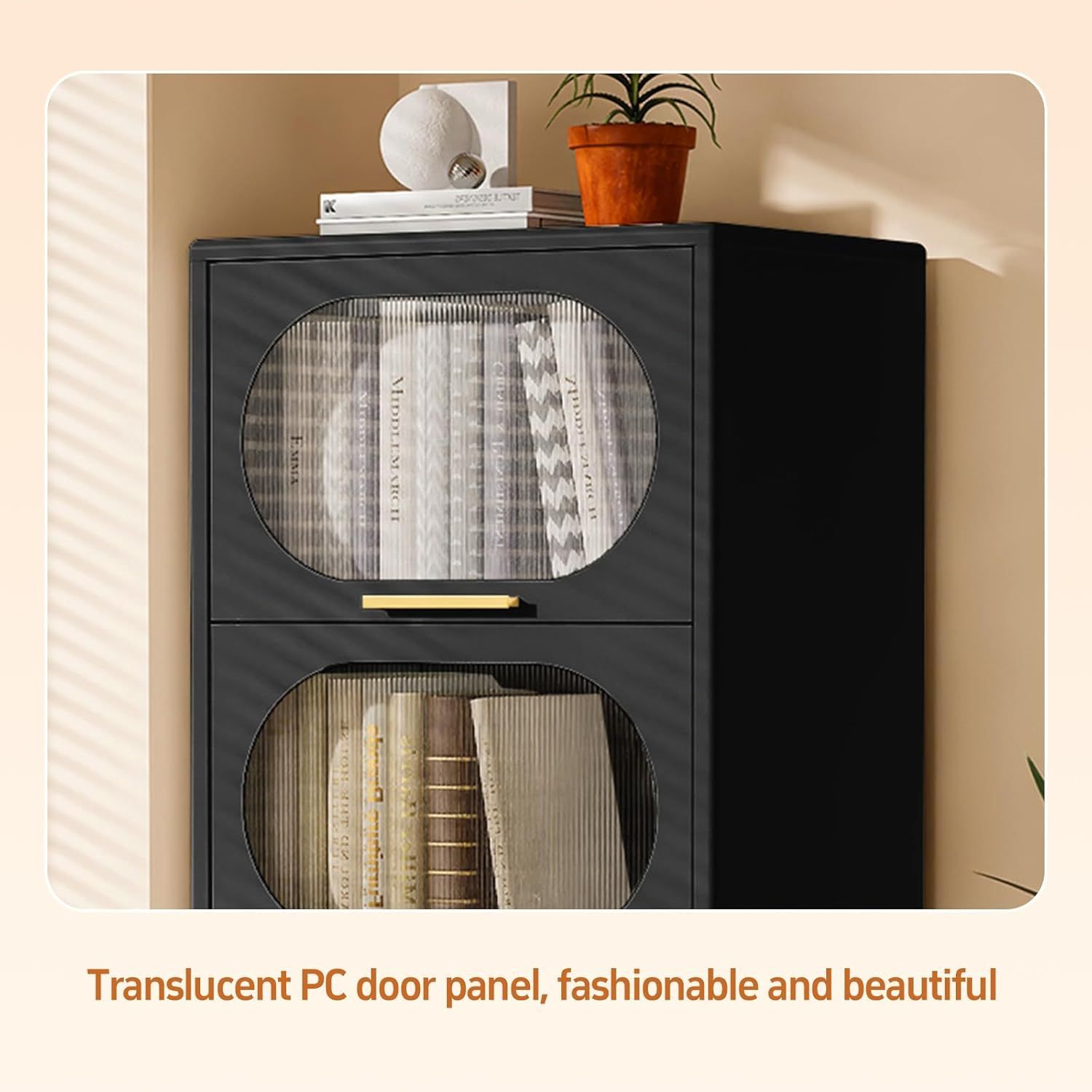 [Semi-Transparent Flip Up Cabinet Doors]The metal storage cabinet adpots detachable wave pattern upward flip doors that can be easliy push into the interior guide rails to save space. Visualization design of semi-transparent kitchen cabinet with PC doors prevent interior items from dust, and allow you to find items quickly. It's paired with stylish metal handles and adjustble feet pads for convenient use. Strong magnetic suction door plug design ensures tight closure of cabinet doors that provides a neat concealed storage space. Our pantry storage cabinet can bring more comfort and convenience to your family life.